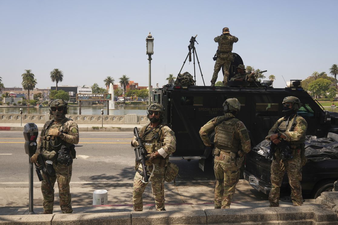 Go deeper. | | | | | | | A MESSAGE FROM GOLDMAN SACHS | | Diversification is a key market theme for the second half of 2025 | | | | | | | Across asset classes, global markets have navigated a tumultuous first half of 2025. Diversification was important for portfolios in the first half of 2025, and it's expected to be critical for the rest of the year amid geopolitical tensions. Hear the mid-year outlook on the Goldman Sachs Exchanges podcast. | | | | | | 3. Catch me up | | | | Federal agents stage at MacArthur Park in LA. today. Photo: Damian Dovarganes/AP - 🪖 90 California National Guard troops, 17 Humvees and four tactical vehicles were deployed to a largely empty park in Los Angeles today to safeguard a potential immigration raid. It's not clear whether any arrests were made. Go deeper.